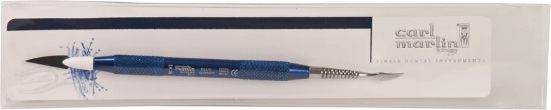 Diese äußerst feinen Instrumente mit ihren Federmessern (0,2 mm + 0,12 mm) erlauben ein exaktes und angenehmes Arbeiten. Die Keramikmasse lässt sich in jeder gewünschten Stärke aufbauen und verdichten. Auch Verblendkunststoffe lassen sich bestens modellieren.