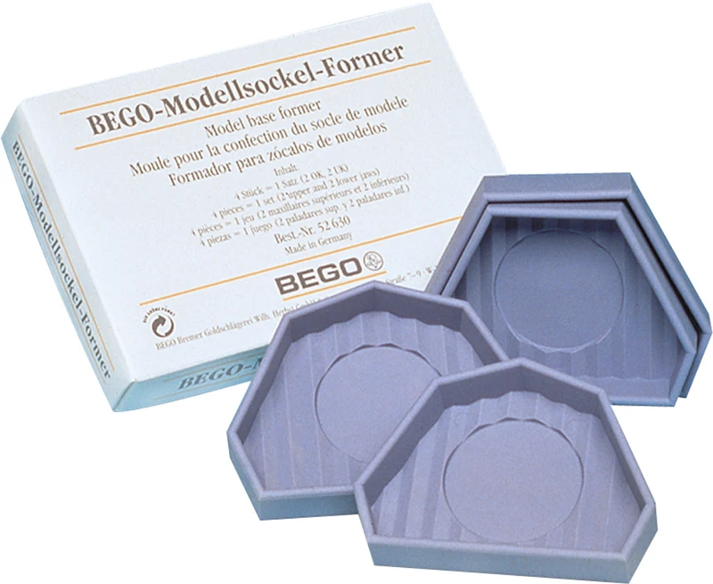 Saubere, glattwandige Modellsockel ohne beschleifen. Leicht aus der Form zu lösen. Je zwei Größen für Ober- und Unterkiefer.