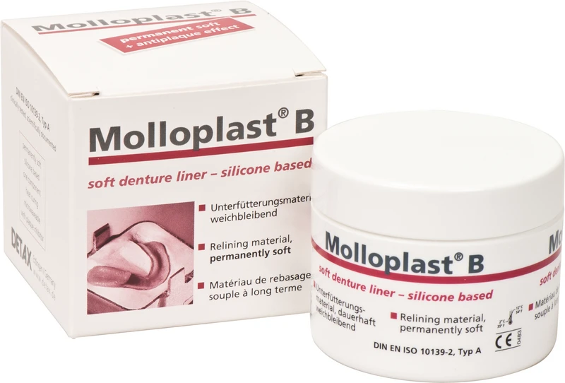 Dauerhaft weichbleibendes Unterfütterungsmaterial, Einkomponenten-Silikon. Heißpolymerisat mikrowellengeeignet, mit breitem Indikationsspektrum, optimale Haftung auf neuer und vorhandener Prothesenbasis. Optimierte Konsistenz durch neuartige Vakuumabfülltechnologie mit Plaqueinhibitor, resistent gegen Einflüsse des Mundmilieus.