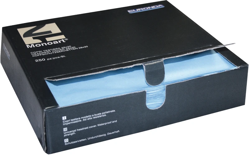 Monoart® Kopfschutztaschen schützen die Kopfstütze Ihres Behandlungsstuhls vor Verunreinigungen. Zum Beispiel durch Haarspray, Haarfärbemittel oder Schweiß. Die Hüllen werden einfach über die Kopfstütze der Behandlungseinheit gezogen und können mit einem Handgriff gewechselt werden. Hygieniescher Schutz für Patientenstühle beim Zahnarzt, in Arztpraxen und Studios.