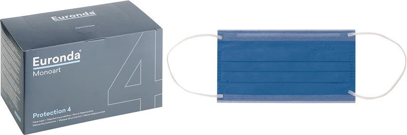 Monoart® Mundschutz Pro 4 Perfect Fit Box 50 Stück mit Gummizug, capriblau