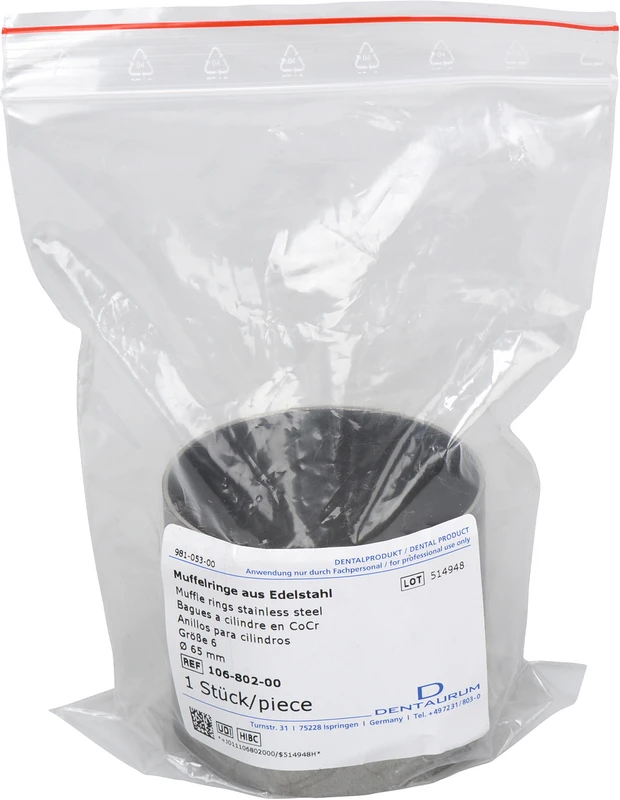 Muffelringe Stück Edelstahl Größe 6, Ø 65 mm, Höhe 55 mm
