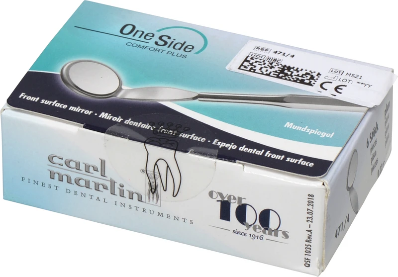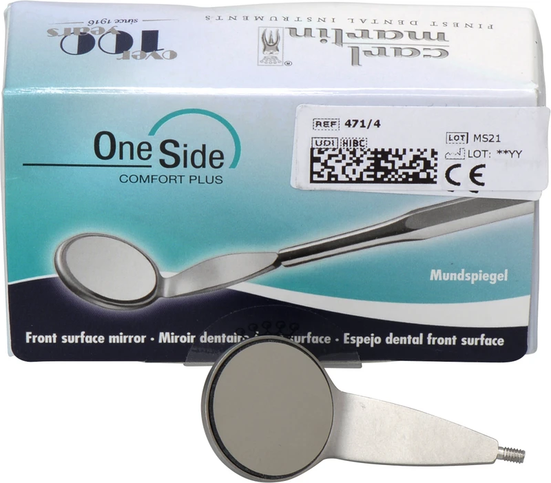 Mundspiegel OneSide Packung 6 Stück Nr.4, plan, breiter Schaft, Rhodium