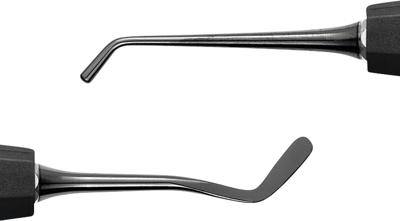 Instrumente zur Kompositrestauration von Front- und Seitenzähnen. Es wurde in Zusammenarbeit mit Dr. Monik Vasant (UK) entwickelt. Die Instrumente haben eine außergewöhnliche Schärfe und ein optimales Gewicht. Die Stahlspitzen haben eine Shadeline® Carbon-Oberflächenbeschichtung. Erhältlich mit schwarzen ADEP-Silikonhüllen.