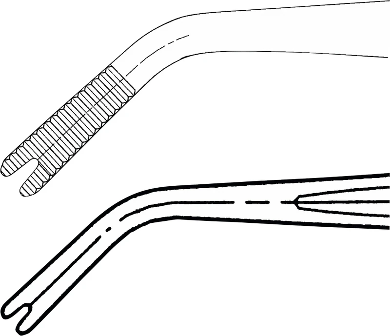 Nahtpinzette Stück gewinkelt, gerieft, 150 mm