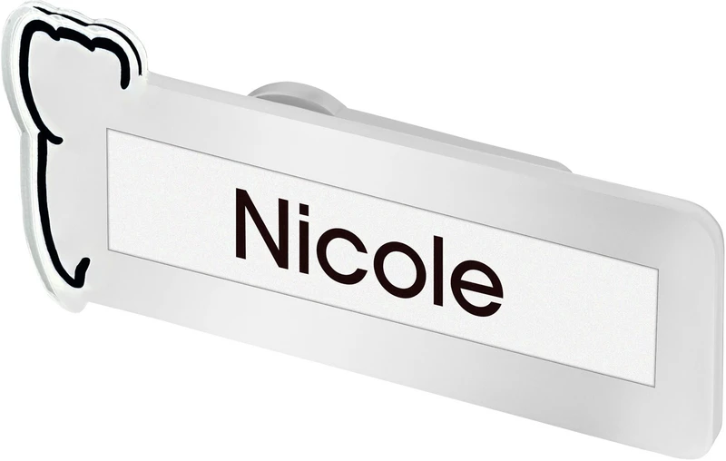 Die 3D-Optik und die konturgeschnittene Form sorgen für eine sympathische, moderne Wirkung. Das widerstandsfähige Plexiglas schützt den Namensstreifen, der bei Bedarf einfach ausgetauscht werden kann. Die Magnetbefestigung ermöglicht ein sicheres Tragen ohne Löcher in der Kleidung.