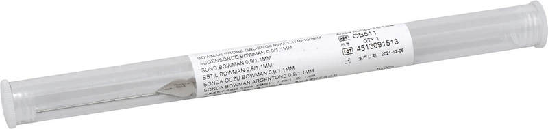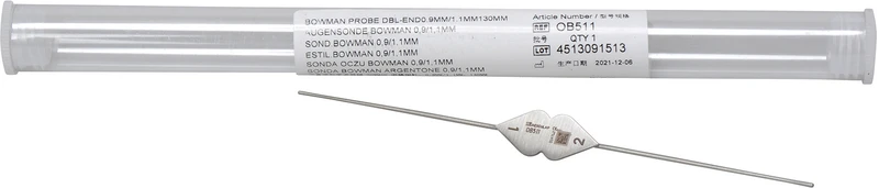 Produktinformationen "Neusilber Sonden nach Bowman Stück Figur 1\2, Ø 0,9 mm + Ø 1,1 mm"