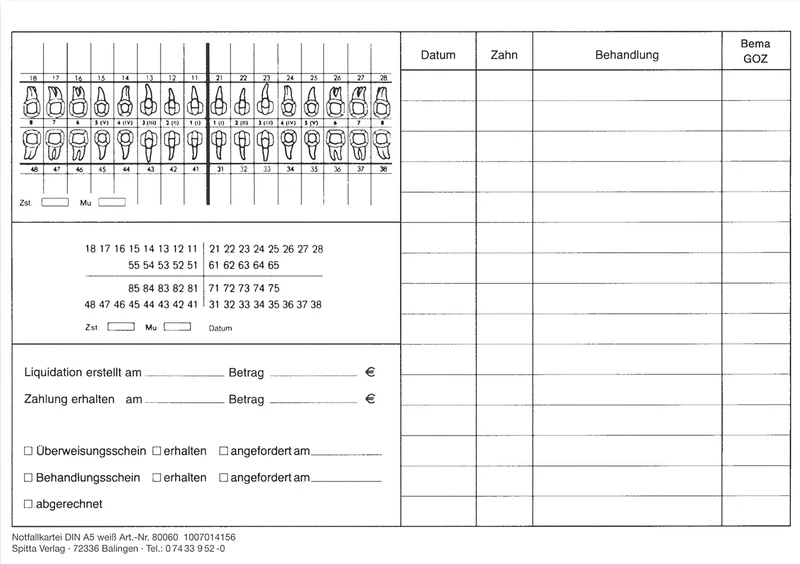 Das Handling ist denkbar einfach: ein Exemplar für den weiterbehandelnden Zahnarzt und einen Karteibeleg mit Alphabetleiste für Ihre Patientenkartei.