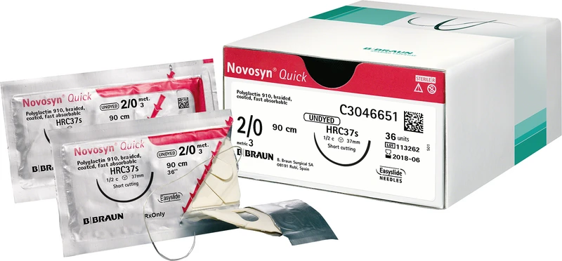 Novosyn® Quick ist ein kurzfristig reißfestes, resorbierbares, synthetisches, geflochtenes Nahtmaterial, das aus einem Copolymer aus 90 % Glycolid und 10 % L-Lactid besteht.