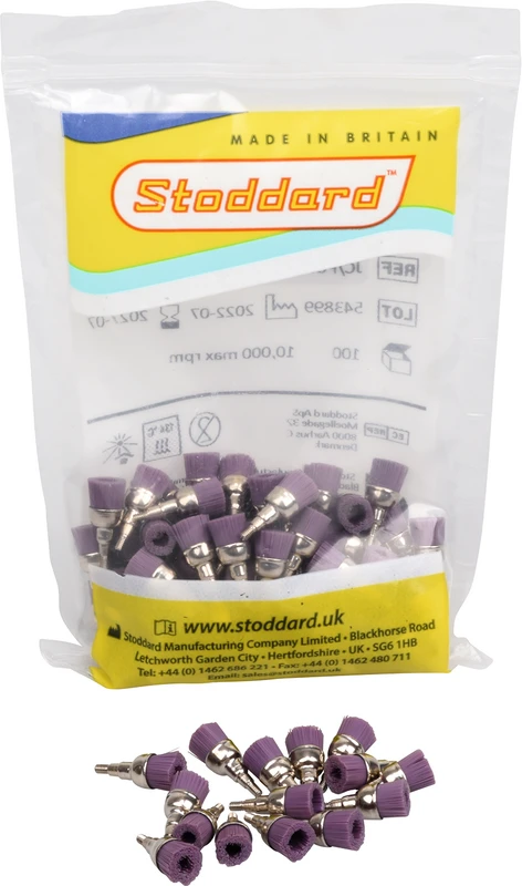 Packung 100 Polierbürsten lila, mittel, screw