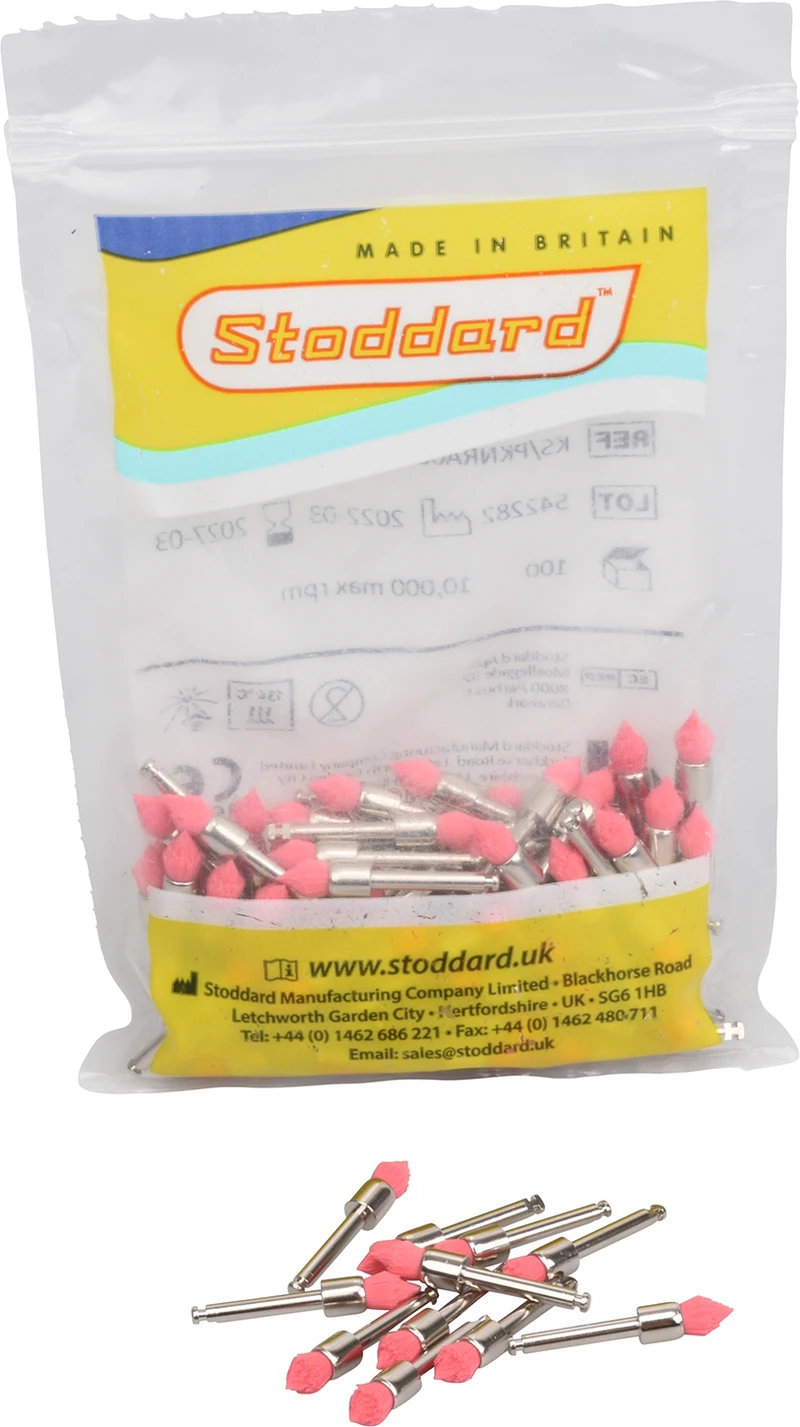 Packung 100 Polierbürsten pink, weich, spitze Form, RA