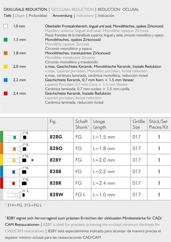 Occlusal Reduction Kit - Instrumente für präzise okklusale ReduktionenDas patentierte Occlusal Reduction Kit (United States Patent Number 6,511,322) ermöglicht die Durchführung präziser okklusaler Reduktionen. Die vertikale Orientierung sorgt zudem für einen guten Zugang zur Okklusalfläche. Die Bohrer sind in 1,5 mm, 1,8 mm, 2,0 mm, 2,2 mm und 2,4 mm Tiefe verfügbar entsprechend der gewählten Restaurationsmaterialien. Ein Bohrer zur labialen Reduktion mit 1,0 mm Tiefe ist ebenfalls im Kit enthalten.*Entwickelt von Athas n. Kometas, DMD.