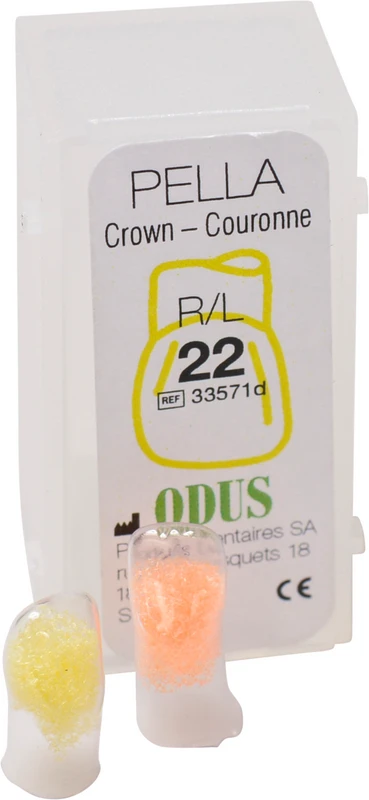 ODUS Pella Kronen sind transparente Streifenkronen, die für die Konturierung von restaurativem Material und die Anpassung des natürlichen Gebisses mittels "Peel-Off" -Technik entwickelt wurden.Die große Auswahl an verfügbaren Formen und Größen ermöglicht es, das natürliche Gebiss auf einfache und schnelle Weise mit minimaler Nachbearbeitung anzupassen. Die Kronenformen bieten eine überlegene Ästhetik als andere Konturierungstechniken, da sie das restaurative Material automatisch an das natürliche Gebiss anpassen. Die Produkttransparenz ermöglicht den Einsatz von lichthärtenden Verbundwerkstoffen als restaurative Materialien. Darüber hinaus hinterlässt die einfache Abisolierung der Kronenform nach dem Harzhärten (Peel Off Technik) eine glatte Oberfläche, die nur eine minimale Nachbearbeitung erfordert, während die dünnen interproximalen Wände enge Kontakte zwischen den Zähnen ermöglichen.Das Produkt ist in 39 verschiedenen Formen/Größen erhältlich, sowohl für die Kinder- als auch für die Erwachsenenzahnheilkunde. Die Kronenformen sind nach einer bestimmten Tabelle nummeriert, um jede verfügbare Form/Größe genau zu identifizieren. Sie sind in verschiedenen Schalen verpackt und präsentieren 39 Einzelpaare (rechts und links), 18 Einzelpaare (rechts und links) oder in Nachfüllungen von 6er-Einzelpaaren (rechts und links).Zusätzlich zu den transparenten Kronenformen von Pella bietet PD weitere Konturierungsoptionen wie transparente Streifen, ideal für die Wiederherstellung der Frontzähne mit lichthärtenden Materialien, und Matrixbänder und -halterungen, ideal für Frontzähne.