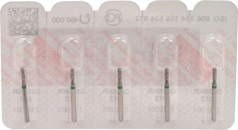 Produktinformationen "Omni Diamanten 835 Packung 5 Stück grün grob, FG, Figur 156 Zylinder Kante rund, 4 mm, ISO 012"