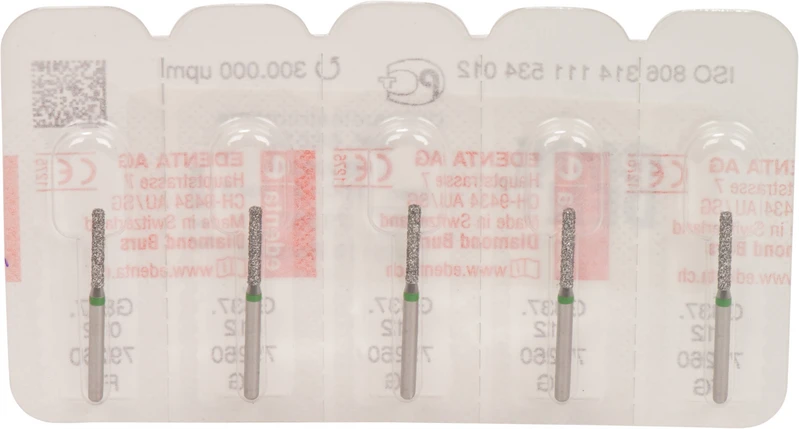 Packung 5 Diamanten grün grob, FG, Figur 111 Zylinder flach, Kopflänge: 8 mm, ISO 012