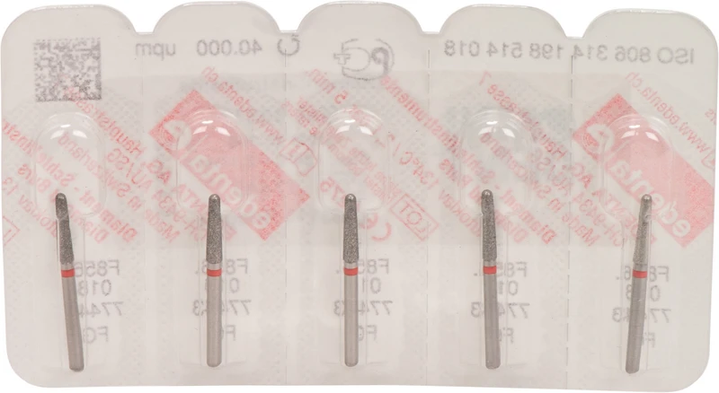 Packung 5 Diamanten rot fein, FG, Figur 198 Konus rund, Kopflänge: 8 mm, ISO 018