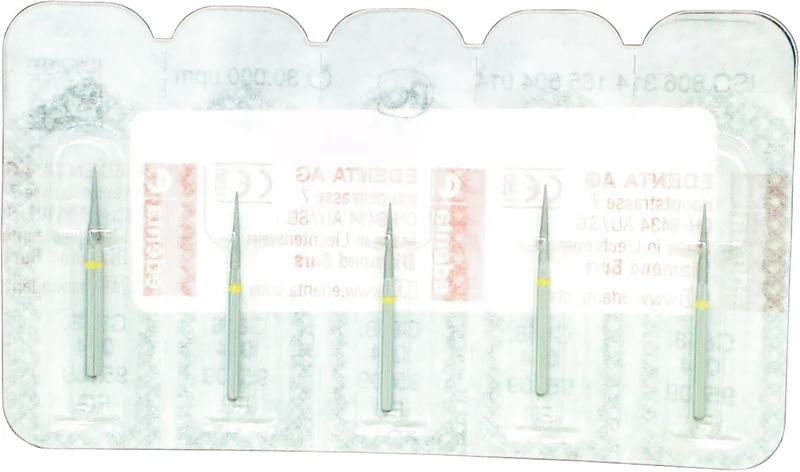 Produktinformationen "Omni Diamanten 858 Packung 5 Stück gelb superfein, FG, Figur 165 Konus Spitze, 8 mm, ISO 014"