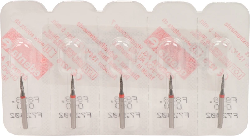 Packung 5 Diamanten rot fein, FG, Figur 165 Konus Spitze, Kopflänge: 8 mm, ISO 010