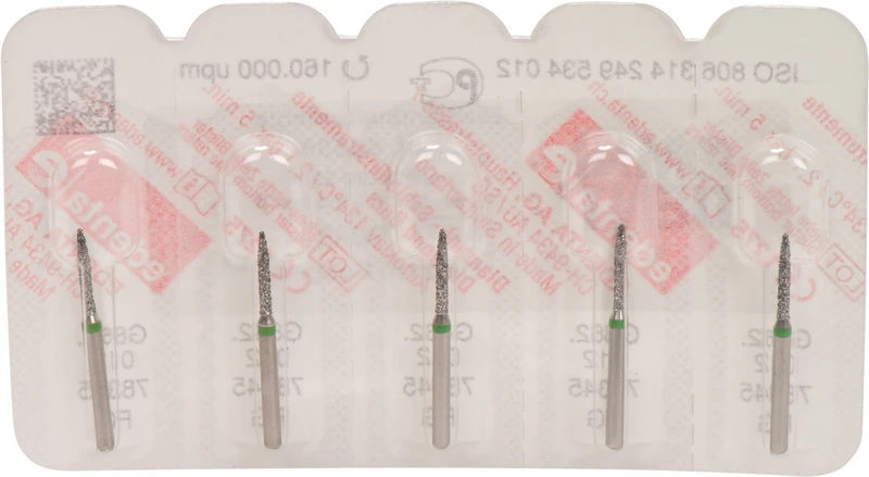 Produktinformationen "Omni Diamanten 862 Packung 5 Stück grün grob, FG, Figur 249 Flamme, 8 mm, ISO 012"