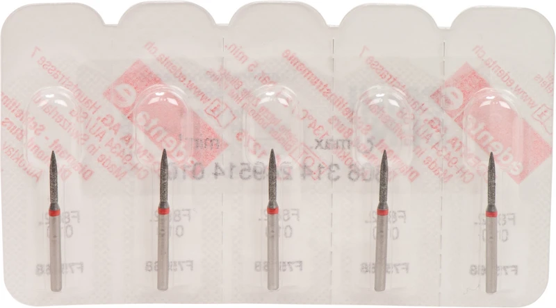 Packung 5 Diamanten rot fein, FG, Figur 249 Flamme, Kopflänge: 8 mm, ISO 010