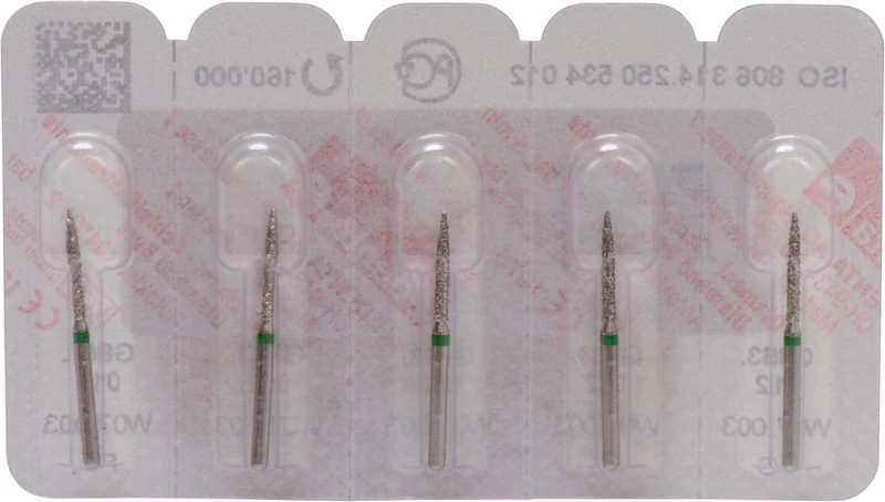 Omni Diamanten 863 Packung 5 Stück grün grob, FG, Figur 250 Flamme, 10 mm, ISO 012