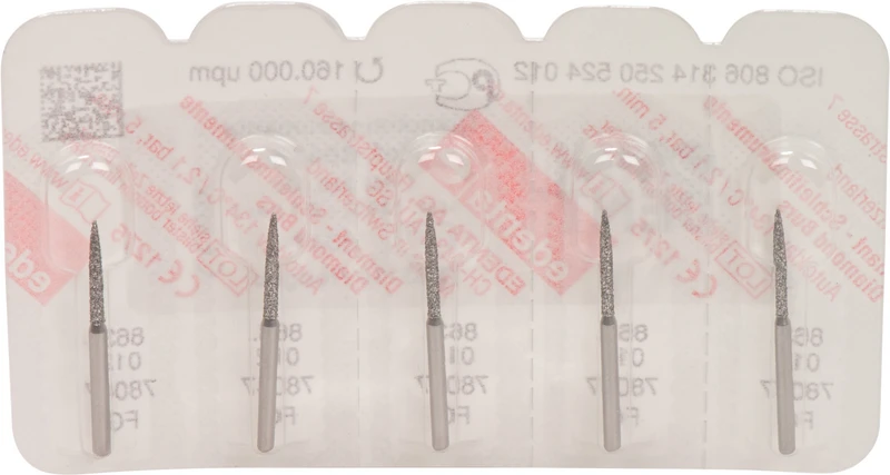 Packung 5 Diamanten Standard, FG, Figur 250 Flamme, Kopflänge: 10 mm, ISO 012