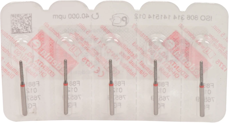 Packung 5 Diamanten rot fein, FG, Figur 141 Zylinder rund, Kopflänge: 8 mm, ISO 012
