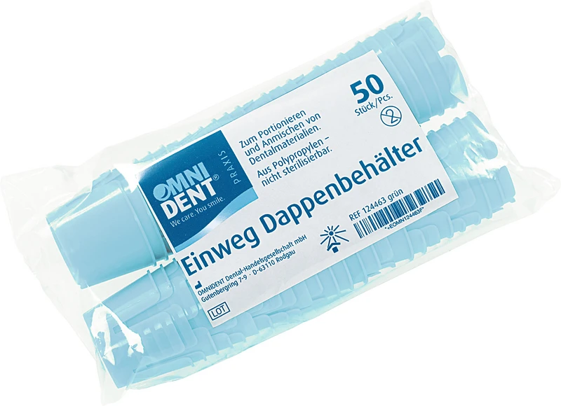 Einmal Dappenbehälter zum Portionieren und Anmischen von Dentalmaterialien. Material: Polypropylen, nicht sterilisierbar.