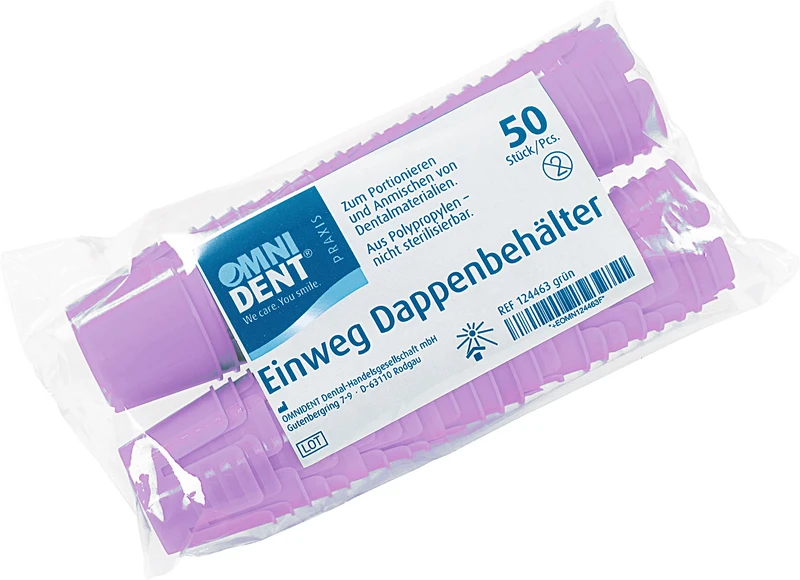 Einmal Dappenbehälter zum Portionieren und Anmischen von Dentalmaterialien. Material: Polypropylen, nicht sterilisierbar.