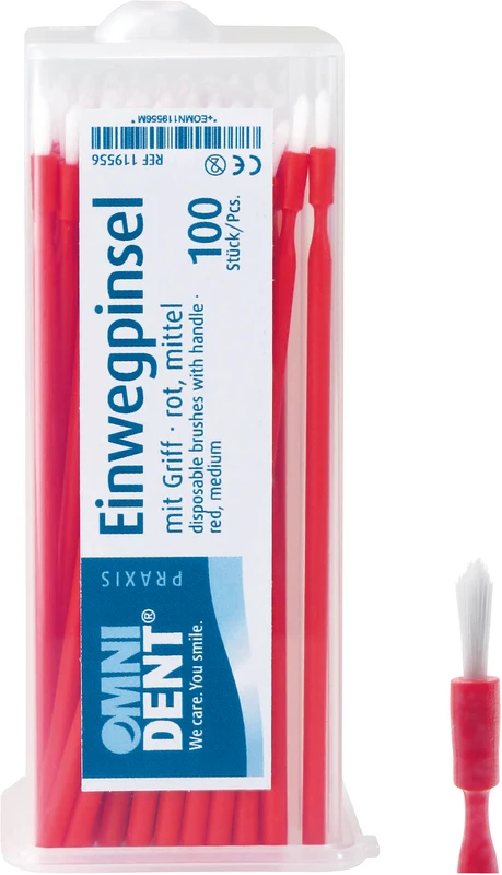 Produktinformationen "Omni Einwegpinsel mit Griff Packung 100 Stück rot, mittel"