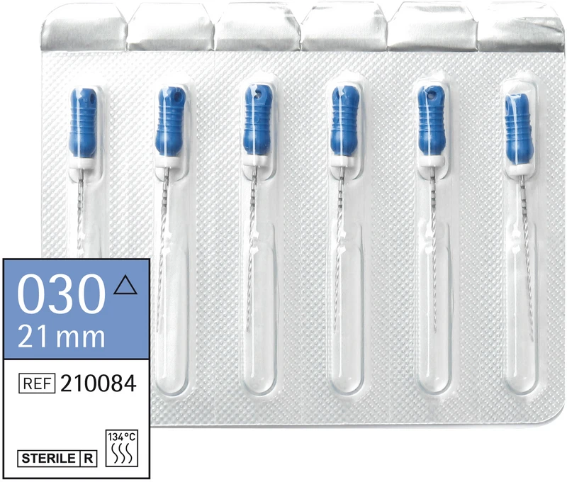 Sterile K-Bohrer von Omnident sind hochwertige und ISO-konform exakt hergestellte Endo-Instrumente. Sie haben eine sehr gute Schneidleistung und eine hohe Bruchsicherheit. Die Instrumente sind farbkodiert nach ISO-Größen und sterilisierbar bis 134 °C. Der Griff ist durch die ergonomische Grip-Fläche rutschfest und das Instrument damit sicher zu verwenden. In einer Blisterpackung, die eine hygienische Einzelentnahme gewährleistet, befinden sich 6 sterile Instrumente, die mit einem Silikonstopper ausgestattet sind. Farbcodierung Stopper: weiß 21mm, gelb 25mm, schwarz 31mm.