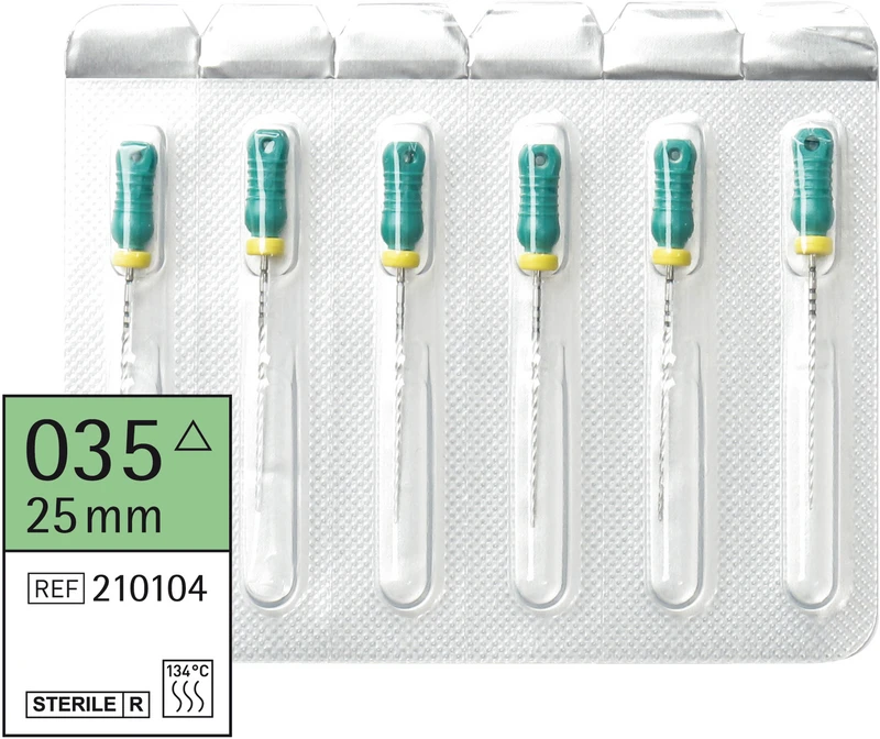 Sterile K-Bohrer von Omnident sind hochwertige und ISO-konform exakt hergestellte Endo-Instrumente. Sie haben eine sehr gute Schneidleistung und eine hohe Bruchsicherheit. Die Instrumente sind farbkodiert nach ISO-Größen und sterilisierbar bis 134 °C. Der Griff ist durch die ergonomische Grip-Fläche rutschfest und das Instrument damit sicher zu verwenden. In einer Blisterpackung, die eine hygienische Einzelentnahme gewährleistet, befinden sich 6 sterile Instrumente, die mit einem Silikonstopper ausgestattet sind. Farbcodierung Stopper: weiß 21mm, gelb 25mm, schwarz 31mm.