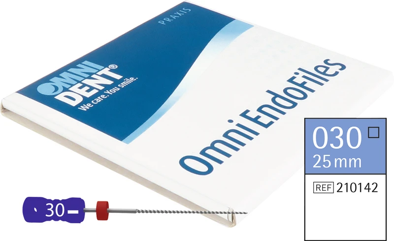 Sterile K-Feilen von Omnident sind hochwertige und ISO-konform exakt hergestellte Endo-Instrumente. Sie haben eine sehr gute Schneidleistung und eine hohe Bruchsicherheit. Die Instrumente sind farbkodiert nach ISO-Größen und sterilisierbar bis 134 °C. Der Griff ist durch die ergonomische Grip-Fläche rutschfest und das Instrument damit sicher zu verwenden. In einer Blisterpackung, die eine hygienische Einzelentnahme gewährleistet, befinden sich 6 sterile Instrumente, die mit einem Silikonstopper ausgestattet sind. Farbcodierung Stopper: weiß 21mm, gelb 25mm, schwarz 31mm.