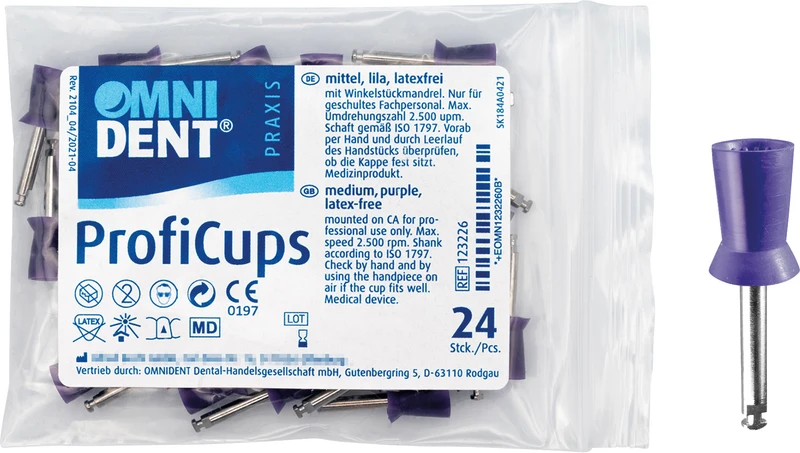 Latexfreie Gummi Polierer/Polierkelche mit Lamellen auf Winkelstückmandrell. Premium Qualität made in Germany. Hervorragende Polierleistung durch Lamellen im Kelch. Der Kragen am Mandrell verhindert wirksam das unerwünschte Eindringen von Poliermitteln in die empfindlichen Lagerteile der verwendeten Hand- oder Winkelstücke.