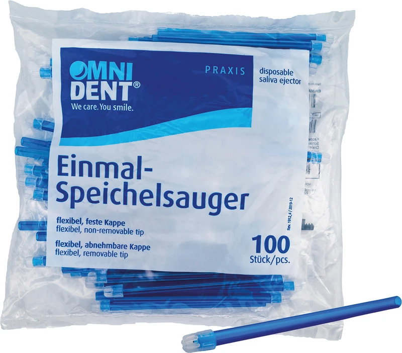 Produktinformationen "Omni Speichelsauger Packung 100 Stück feste Kappe blau"