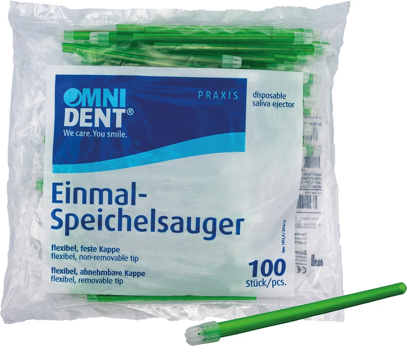 Omni Speichelsauger Packung 100 Stück feste Kappe grün