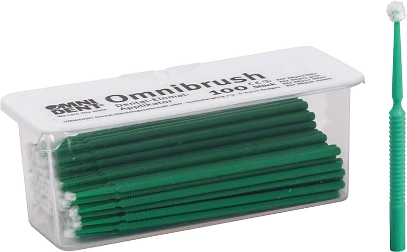 Die einzigartige Konstruktion dieses Micropinsels besteht aus kleinen, nicht fusselnden und nicht absorbierenden Fasern. Die aufzutragenden Lösungen bleiben zwischen den Fasern. Es entsteht eine nicht tropfende Kugel, die den aufzutragenden Stoff festhält, bis die Applikation erfolgt ist. Der Micropinsel ist sehr geschmeidig und gestattet das exakte Aufbringen von Lösungsmengen, die nicht größer sind als 1/8 des Tropfens. Omnibrush kann verwendet werden für das Auftragen von: Haftmitteln, Fluorid-Lösungen, hämostatischen Lösungen, Ätzmitteln, Dichtmitteln und Eugenol. Zubehör für OmniCite, OmniCite All`N´One, OMNI-ETCH.