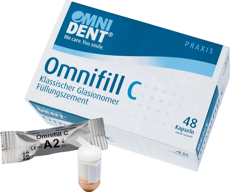 Omnifill C ist ein leistungsstarker und langlebiger Glasionomer Zement für die semipermanente Füllungstherapie. Durch die Verwendung spezieller Dentalgläser wirkt Omnifill C dabei nicht nur besonders ästhetisch, sondern kann auch stetig Fluoride abgeben. Die Kapselvariante ist in der Konsistenz auf den Seitenzahnbereich optimiert und sofort applizierbar. Die Hand-Mix Version erlaubt alternativ eine mittelviskose Einstellung, die für keilförmige Defekte, Klasse III und Milchzahnrestaurationen ein optimales Material bereitstellt.