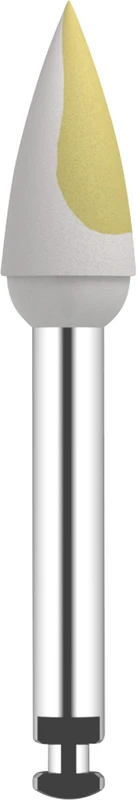 Omnipol für Zirkon gesintert Stück gelb\weiß fein, Flamme, RA, Kopflänge: 10 mm, Ø 4,4 mm