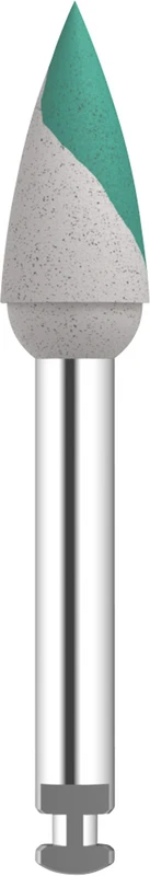 Produktinformationen "Omnipol für Zirkon gesintert Stück grün\weiß x-grob, Flamme, RA, Kopflänge: 10 mm, Ø 4,4 mm"