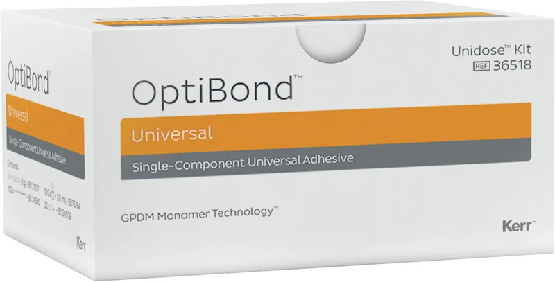 OptiBond Universal ist da. Das Ein-Flaschen-System kombiniert die Zuverlässigkeit des gleichen GPDM-Monomers wie in OptiBond FL, das als der Goldstandard in Adhäsion bekannt ist, mit der einfachen Anwendbarkeit eines Universal-Adhäsivs. Das Universal-Adhäsiv bietet eine außergewöhnliche Bindungsstärke auf allen Oberflächen und Substraten und bei allen Ätztechniken. Effizienz und Flexibilität endlich ist beides möglich.