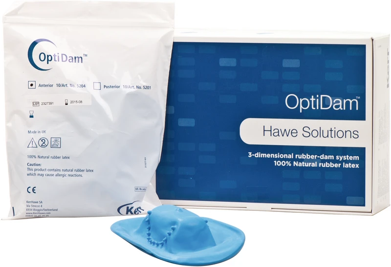 Erster 3-dimensionaler Kofferdam mit Noppen Design für einfaches Arbeiten und zuverlässigen Schutz. Die 3-dimensionale Form in Kombination mit dem speziellen anatomisch geformten Kofferdam Rahmen passen sich exakt den Konturen des Mundes an und ermöglichen dem Zahnarzt ein optimales Arbeitsfeld. OptiDam ist absolut einfach zu platzieren und verringert das Abspringen der Kofferdamklammern.