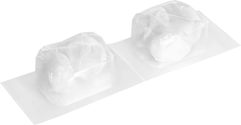 Schlinggazetupfer aus Verbandmull EN 14079, 20fädig; der aus nur einem Mullstück gefertigte Tupfer ist so verschlungen, dass die Schnittkanten sicher im Inneren liegen; mit hohem Absorptionsvermögen.