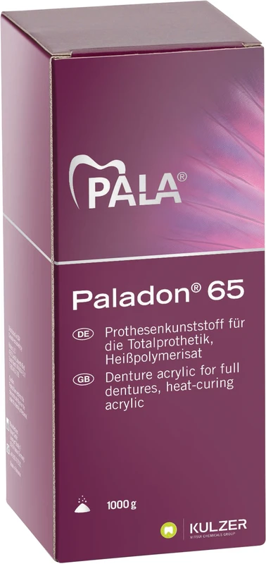 Das legendäre Heißpolymerisat. Als Erfinder der heißpolymerisierenden Prothesenkunststoffe setzt Heraeus seit 75 Jahren mit dem bewährten Paladon Maßstäbe. Seine beständig weiter entwickelten mechanischen Produkteigenschaften ermöglichen eine sehr anwenderfreundliche und variable Verarbeitung und gewährleisten gleichzeitig auf wirtschaftliche Weise die Herstellung qualitativ hochwertiger Prothesen. Paladon® 65 lässt sich auf einfache Weise ohne komplizierte Zusatzgeräte verarbeiten. Indikation