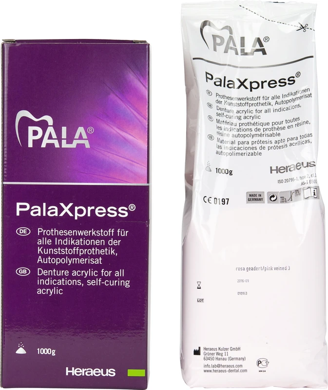 PalaXpress® Der Marktführer* - passgenauer Universal-Prothesenkunsstoff PalaXpress® ist für verschiedene Indikationen geeignet. Es kann sowohl gegossen als auch mit Palajet injiziert werden. Mit dem abgestimmten System PalaXpress® und Palajet lassen sich passgenaue Totalprothesen im Injektionsverfahren herstellen. Durch die einzigartige Rezeptur bietet Ihnen PalaXpress sowohl bei der Gießtechnik als auch bei der Injektion eine ungewöhnlich große Verarbeitungsbreite. *laut GfK-Studie MAT 12/2018 - Kaltpolymerisate Deutschland. VORTEILE