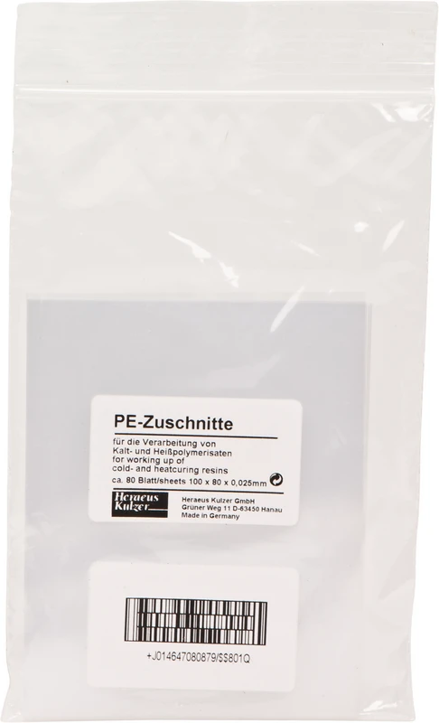 Packung ca. 80 Blatt PE-Zuschnitte, 100 x 80 x 0,025 mm