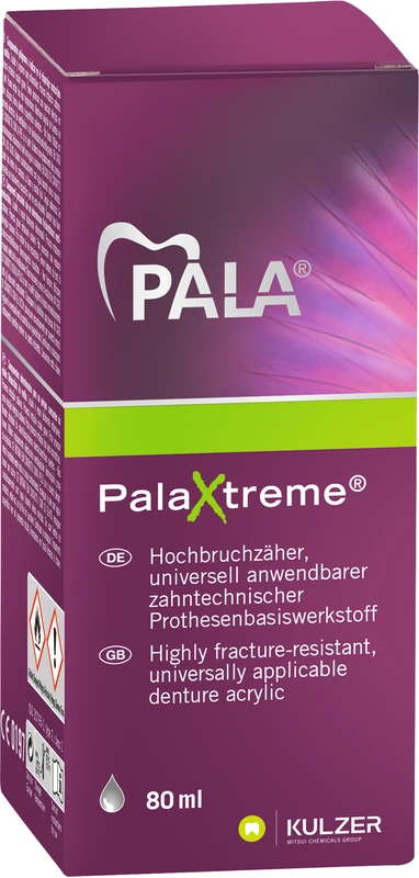 PalaXtreme® ist ein kaltpolymerisierender High-Impact Prothesenkunststoff, der Laboren eine große Flexibilität ermöglicht. Er ist genauso einfach in der Handhabung wie konventionelle Kaltpolymerisate. Das gilt sowohl für die Gieß - als auch die Injektionstechnik. Für Zahntechniker als auch Patienten ist dieses Material allergiefreundlicher der Kunststoff ist somit stark und sanft zugleich.