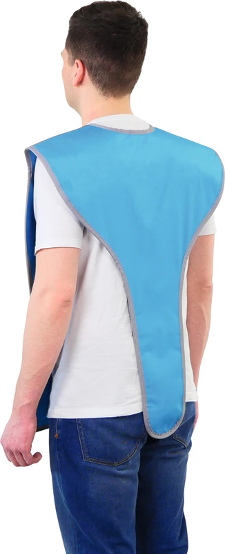 Das Anlegen gestaltet sich besonders komfortabel, mit einem Handgriff kann die Schutzkleidung individuell auf den Körperumfang des jeweiligen Patienten angepasst werden. Durch das vorderseitig angebrachte Verschlusssystem wird vermieden, dass bei ungenauem Schließen Teile der Schutzkleidung in den bildrelevanten Bereich gelangen. Dadurch liegt die Rückenpartie glatt und plan am Körper auf.