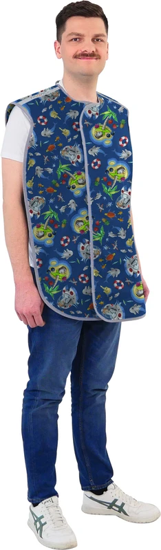 Das Anlegen gestaltet sich besonders komfortabel, mit einem Handgriff kann die Schutzkleidung individuell auf den Körperumfang des jeweiligen Patienten angepasst werden. Durch das vorderseitig angebrachte Verschlusssystem wird vermieden, dass bei ungenauem Schließen Teile der Schutzkleidung in den bildrelevanten Bereich gelangen. Dadurch liegt die Rückenpartie glatt und plan am Körper auf.