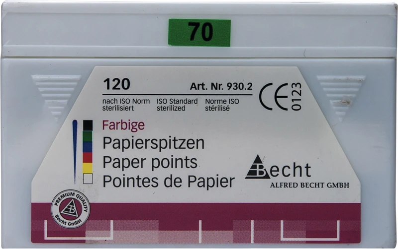 Extrem saugfähig und faserfrei überzeugen die Papierspitzen mit optimaler Festigkeit und glatter Oberfläche. Hergestellt nach ISO-Norm mit 28 mm Länge. Folienversiegelung und Gammasterilisation erfüllen die strengen Anforderungen der Behandlungshygiene.